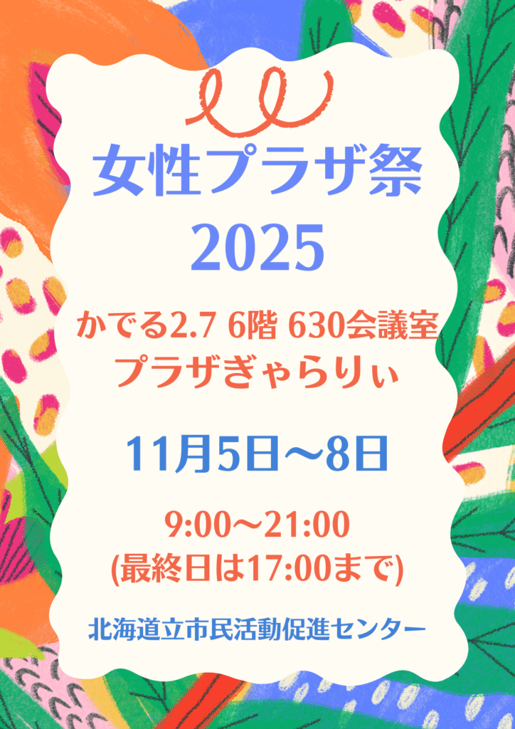 北海道立市民活動促進センターが共催を務める『女性プラザ祭2025』が、11月4日から始まります✨
