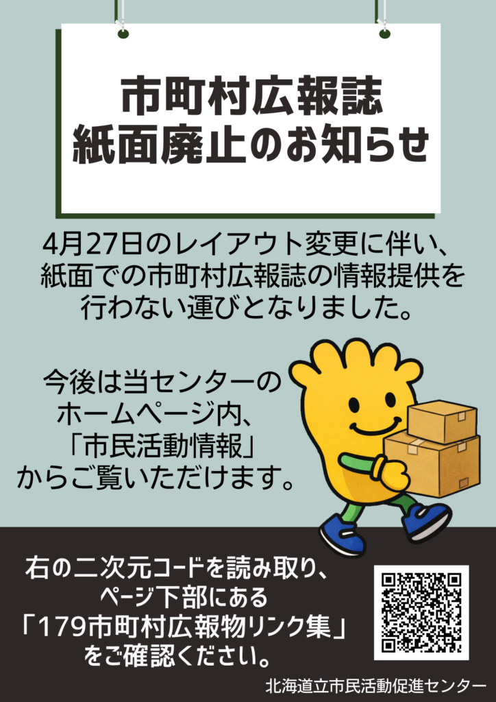 しかし、2026年4月27日に行う、センターのレイアウト変更に伴いまして、今後はホームページ上のみでの情報提供とさせていただきます。