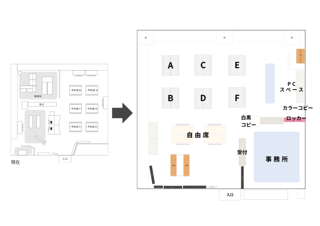 それに伴い、下記のようにフリースペースにも移動がありますので、ご利用の団体さまは確認をお願いします。